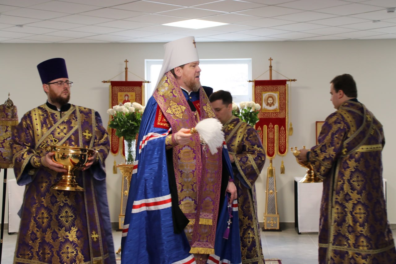 24 марта 2026 года Высокопреосвященнейший Владимир, митрополит Донецкий и Мариупольский, совершил чин освящения главного корпуса Донецкого национального университета экономики и торговли имени Михаила Туган-Барановского в преддверии открытия после длительного восстановления.